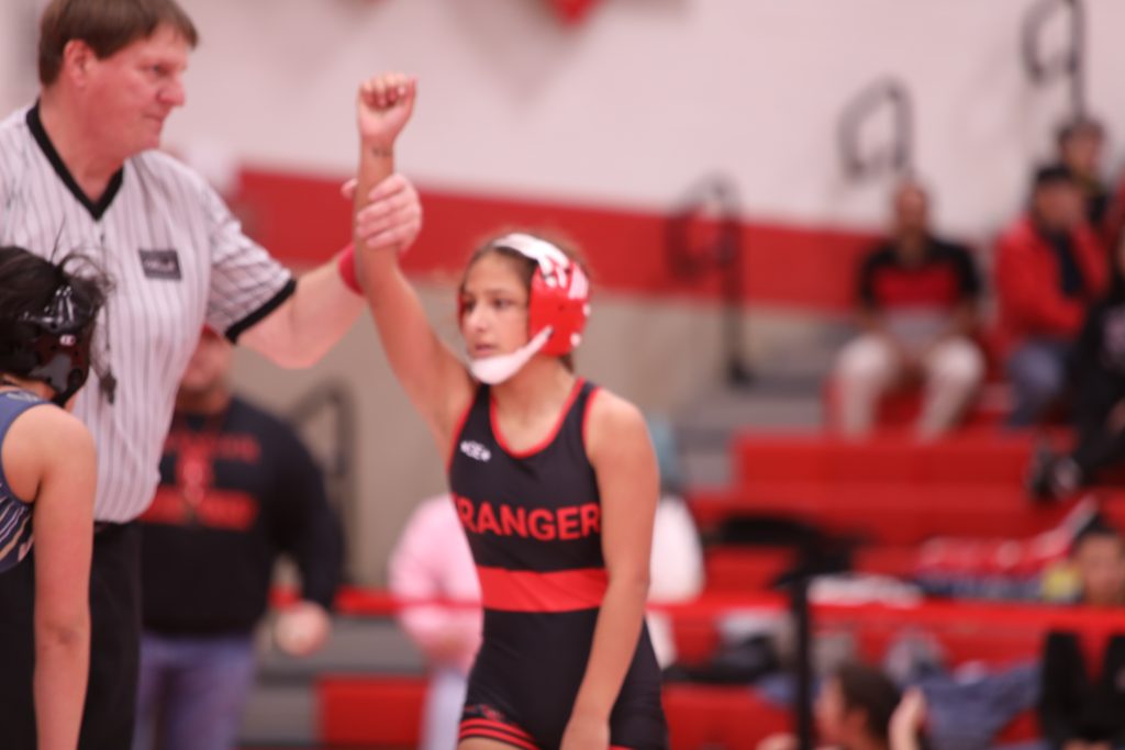 Results: 100 lbs: 1st. Vanessa Torres, 4th Onica Sanchez; 105 lbs: 1st Malia Riojas, 3rd Isabella Berger; 110 lbs: 3rd Genesis Guerrero, 8th Ilianna Juarez; 115 lbs: 3rd Dalila Tovar, 5th Stavette Norris; 120 lbs: 1st Gabrielle Berger, 3rd Leslie Vazquez; 130 lbs: 7th Ivone Gaytan; 170 lbs: 1st Sonia Mendoza.